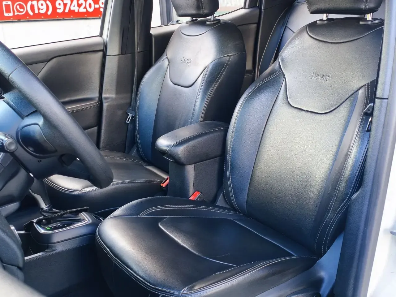 JEEP RENEGADE 1.8 FLEX 4×2 AUT. 2020 COM MOTOR 1.8 L DE 4 CILINDROS, 139 CV (ETANOL) / 135 CV (GASOLINA) E TORQUE DE 19,6 KGFM (E) OU 18,7 KGFM (G), CÂMBIO AUTOMÁTICO DE 6 MARCHAS E TRAÇÃO DIANTEIRA. FAZ DE 0 A 100 KM/H EM APROXIMADAMENTE 11,1 S E ATINGE MÁXIMA DE 182 KM/H (E) OU 180 KM/H (G). COM POSTURA DE SUV URBANO, TRAZ RODAS DE LIGA LEVE ARO 17″ (normalmente 215/60 R17), GRADE DIANTEIRA IMponente, FARÓIS COM LUZ DE NEBLINA, ALTURA DO SOLO DE ~170–175 MM, UNINDO ROBUSTEZ COM ESTILO. INTERIOR FUNCIONAL PARA CINCO PESSOAS, COM BANCOS EM TECIDO, VOLANTE REGULÁVEL EM ALTURA, AR-CONDICIONADO, TRIO ELÉTRICO, COMPUTADOR DE BORDO E CENTRAL MULTIMÍDIA COM USB, BLUETOOTH E CONTROLES DE ÁUDIO NO VOLANTE. Mobiauto EQUIPADO COM FREIOS ABS COM EBD, AIRBAGS FRONTAS, CONTROLE DE TRAÇÃO E ESTABILIDADE (ESC/TCS), PILOTO AUTOMÁTICO ADAPTATIVO, SENSOR DE ESTACIONAMENTO TRASEIRO E CHAVE PRESENCIAL EM VERSÕES MAIS COMPLETAS. DIMENSÕES PRÁTICAS: entre‑eixos de 2.570 mm, comprimento de ~4.232 mm, altura de ~1.658 mm, largura ~1.798 mm; porta-malas de 320 L, tanque de ~60 L e peso aproximado de 1.393 kg. Direção elétrica com raio de giro de ~10,8 m. CONSUMO MÉDIO: cidade de cerca de 6,5 km/l (E) / 9,5 km/l (G); estrada de aproximadamente 7,6 km/l (E) / 10,9 km/l (G). Autonomia estimada que pode variar entre 390 km (E) e 650 km (G), conforme condição de uso. OPINIÕES DE USUÁRIOS relatam que o motor 1.8 não é dos mais enérgicos no trânsito urbano, sendo necessário acelerar com intenção, mas muitos elogiam o conforto e a dirigibilidade suave para uso diário. Problemas comuns apontam o trocador de calor do câmbio como edição preventiva recomendada. VERSÁTIL, urbano e com bom conjunto de itens, o Renegade 1.8 automático de 2020 entrega equilíbrio entre espaço, segurança e dirigibilidade — ideal para quem quer praticidade e presença de SUV sem gastar demais.